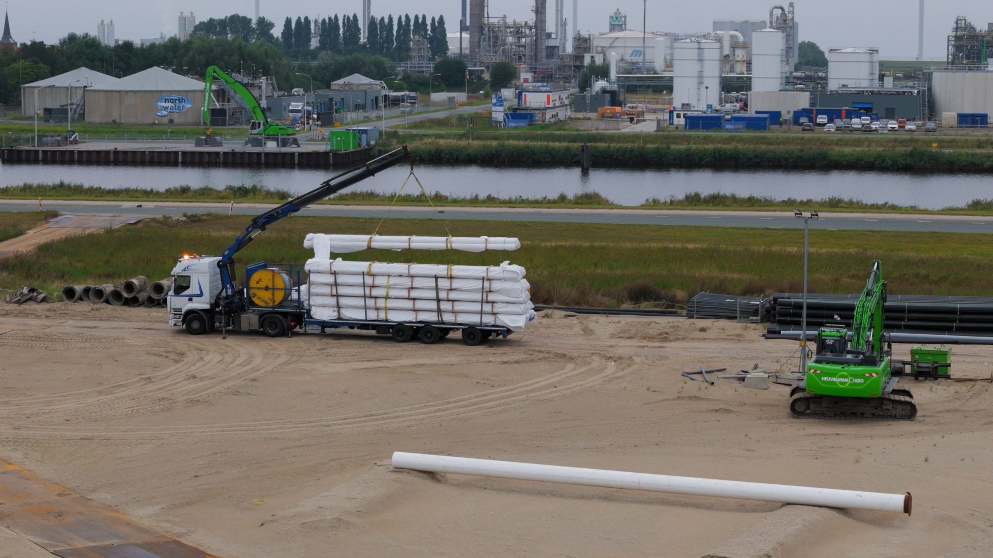 Industriewater op Oosterhorn krijgen, begint bij de waterfabriek van North Water in het zuidelijker gelegen Garmerwolde. ‘Hier maken we van oppervlaktewater industriewater en brengen het via een leiding naar de Groningse Eemshaven, 28 kilometer verderop’, vertelt Mark. ‘Door een aftakking van deze leiding te maken van Garmerwolde naar Delfzijl, krijgen we het ook bij Oosterhorn.’ Voor het aanleggen van water- en afvalwaterleidingen in Oosterhorn ontving North Water zo’n 9,5 miljoen euro aan subsidie van het Just Transition Fund (JTF).