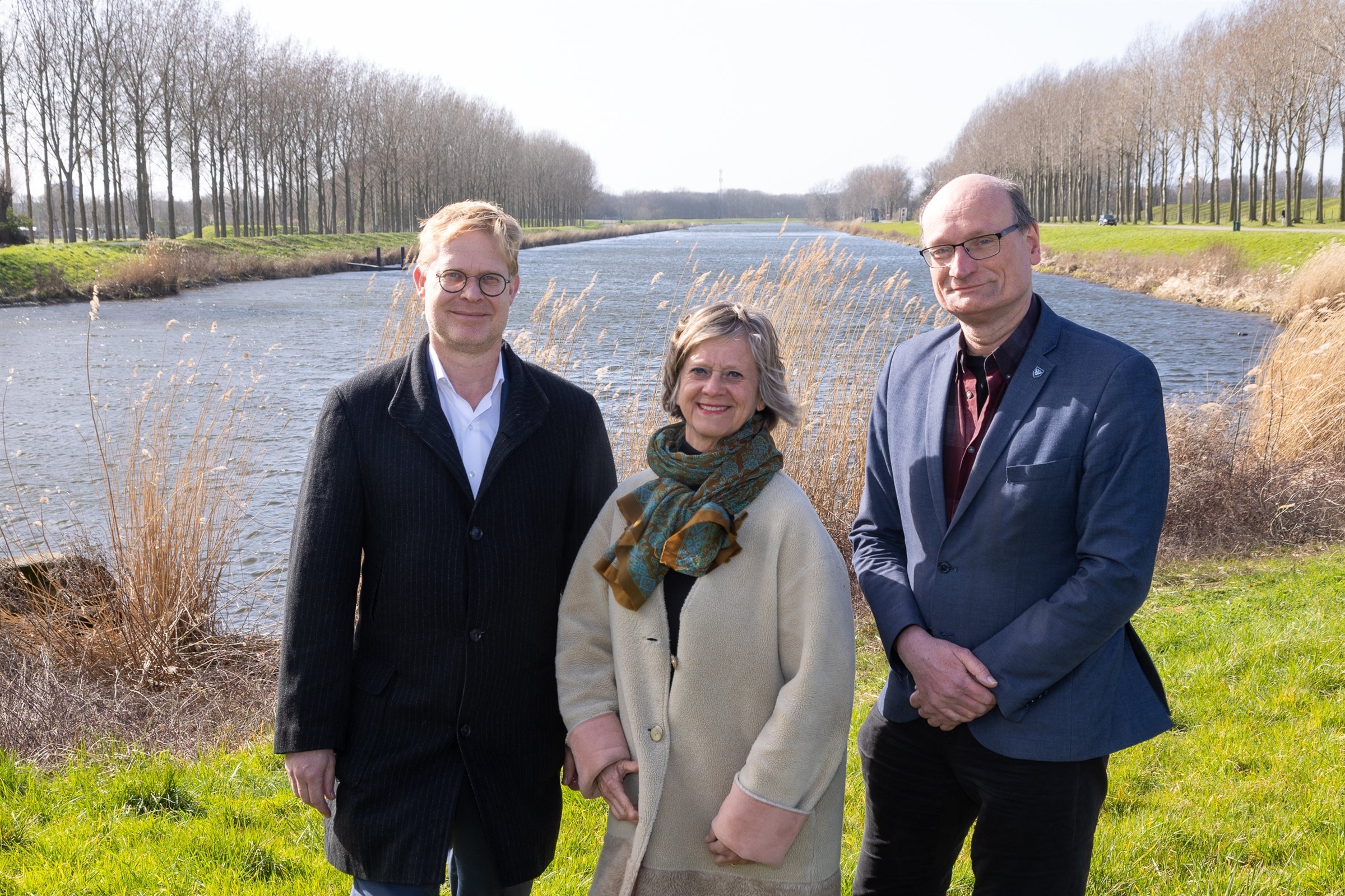 Op de foto : Eric van der Schans (links), Dorenda Gerts en Marcel Visser onderzoeken de toekomst van de Bernisse en het Brielse Meer als buffer voor zoet water.