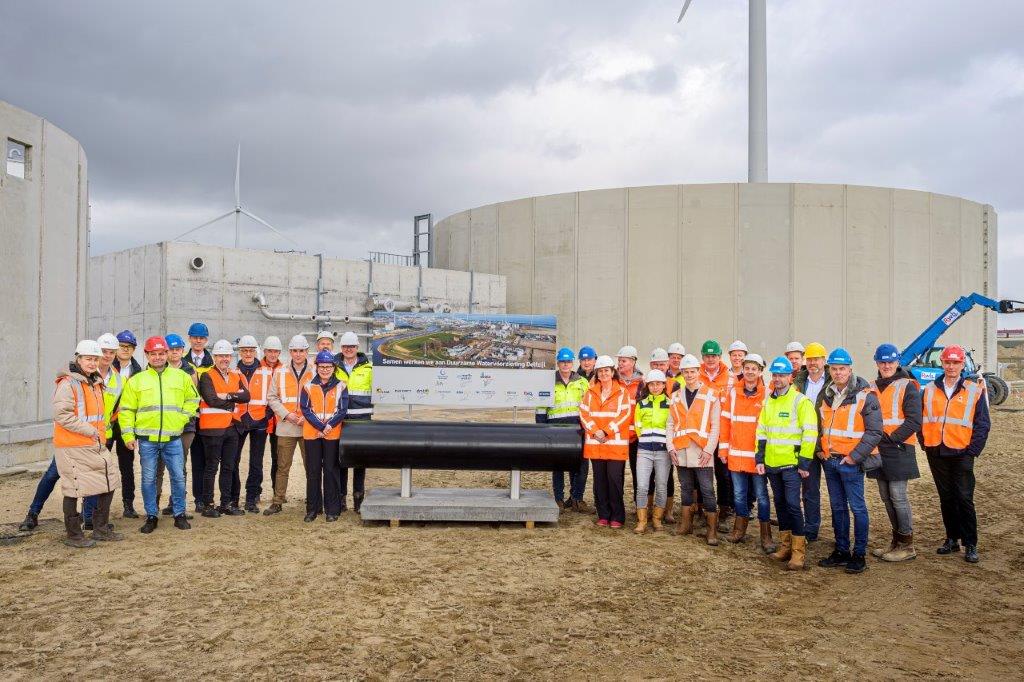 Met het onlangs afronden van de aanbesteding voor de aanleg van de transportleiding is er 15 maart een symbolische start gegeven en kan het DWD-project in volle vaart verder. Verder, want met het oog op enkele deelopleveringen gaandeweg 2024 werd er reeds eerder al met een aantal bouwactiviteiten gestart. De contouren van het beoogde eindresultaat zijn inmiddels dan ook al goed zichtbaar. Uit de overtuiging waarmee de handtekeningen werden gezet tijdens het symbolische startmoment blijkt het enthousiasme waarmee de partijen aan de slag gaan. Allen zijn trots op de eigen bijdrage aan het project en op welke manier DWD straks gaat bijdragen in duurzame watervoorzieningen voor Delfzijl!