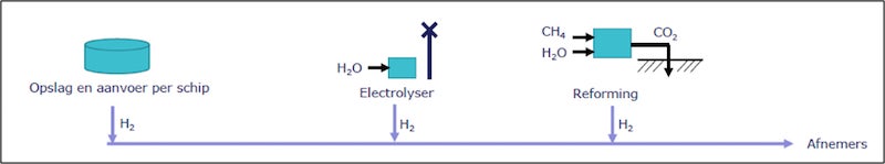 De verschuiving van de lokale watervraag hangt samen met de hoeveelheid geïmporteerde waterstof en lokale productie van groene en blauwe waterstof. Bij de verschuiving naar import van waterstof uit ammoniakaanvoer per schip zal de watervraag afnemen.